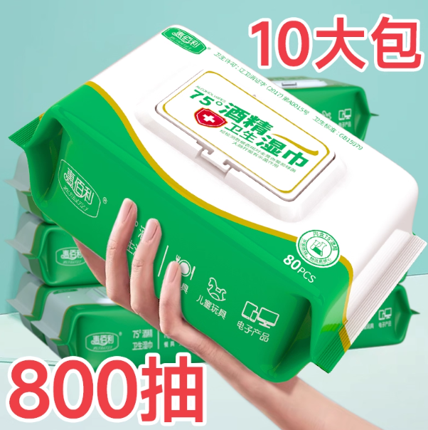 惠佰利75度酒精湿巾大包特价80抽加大加厚办公家用酒精消毒湿巾