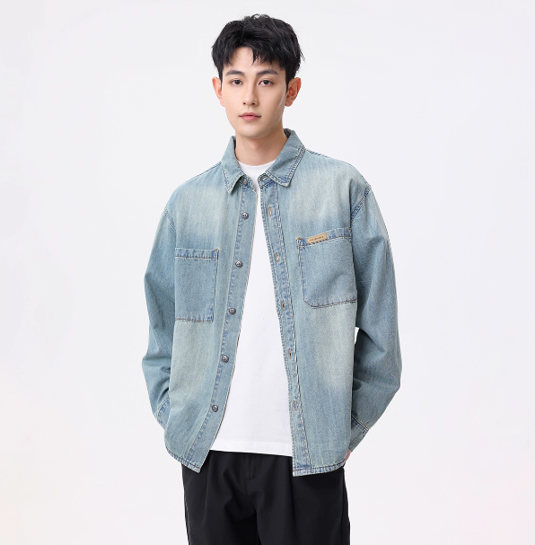 hansca天丝莱赛尔竹节牛仔衬衫男款2025秋季美式复古水洗衬衣外套