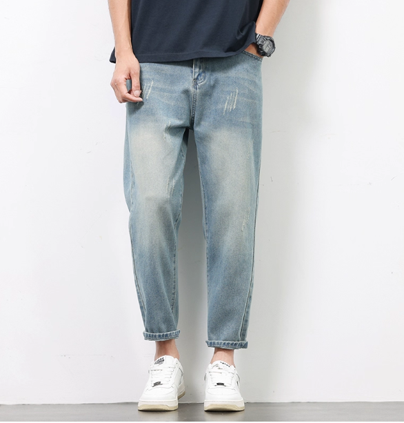 2025春秋季美式高街牛仔裤男款新款水洗宽松直筒休闲破洞九分裤子
